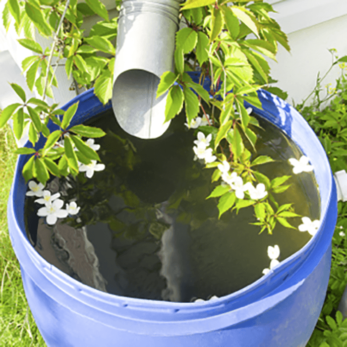 Conserve H2O by collecting rain from your downspouts in a rain barrel. You can use this supply to sustainably water your plants instead of going straight for the hose.